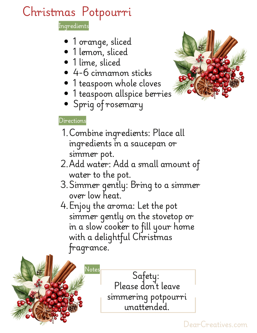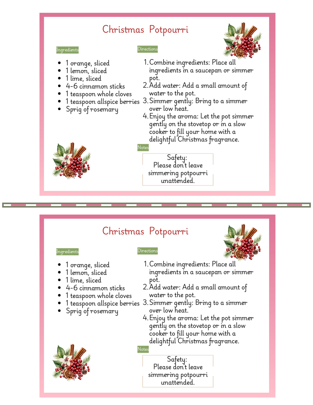 Printable Christmas Potpourri Recipe